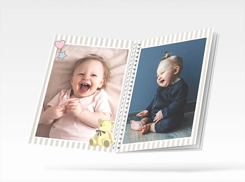 Von den ersten Gähnern bis zu den Nickerchen im Schlafanzug, halte die Anfänge dieses großen Abenteuers in einem personalisierten Fotoalbum zur Geburt fest. Gestalte seine ersten Erfolge, füge deine Anekdoten als frischgebackene Eltern hinzu und erstelle ein Fotobuch zur Geburt, das so niedlich ist wie ein Gurren um 6 Uhr morgens. Die Nächte sind kurz, aber die Erinnerungen verdienen ein großes Format!