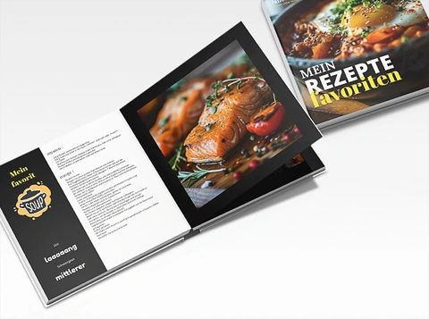 Ein personalisiertes Rezeptbuch zu erstellen ermöglicht es dir, deine kulinarische Welt mit einem professionellen Ergebnis zur Geltung zu bringen. Wähle das Format, das zu dir passt, ein elegantes Layout, einen Hart- oder Softcover, und lass deiner Kreativität freien Lauf. Der Druck deines kulinarischen Albums erfolgt auf hochwertigem Papier für ein sorgfältiges Ergebnis, das vielen Konsultationen standhält (selbst mit leicht buttrigen Fingern).